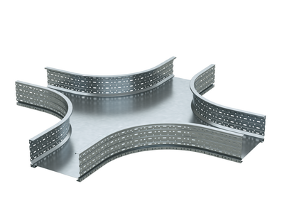 В состав системы тяжелых лотков "U5 Combitech" входят не только прямые элементы, но и специальные аксессуары, позволяющие создавать кабельные трассы сложного конструктива. С помощью крестообразного ответвителя можно как разворачивать трассу, так и организовывать ее ответвления. Листовая конструкция защищает кабель от внешних воздействий и предотвращает его провисание и повреждение. Плавные повороты Х-образного ответвителя предотвращают повреждение кабеля при прокладке и позволяют наиболее эффективно использовать внутренний объем аксессуара.
