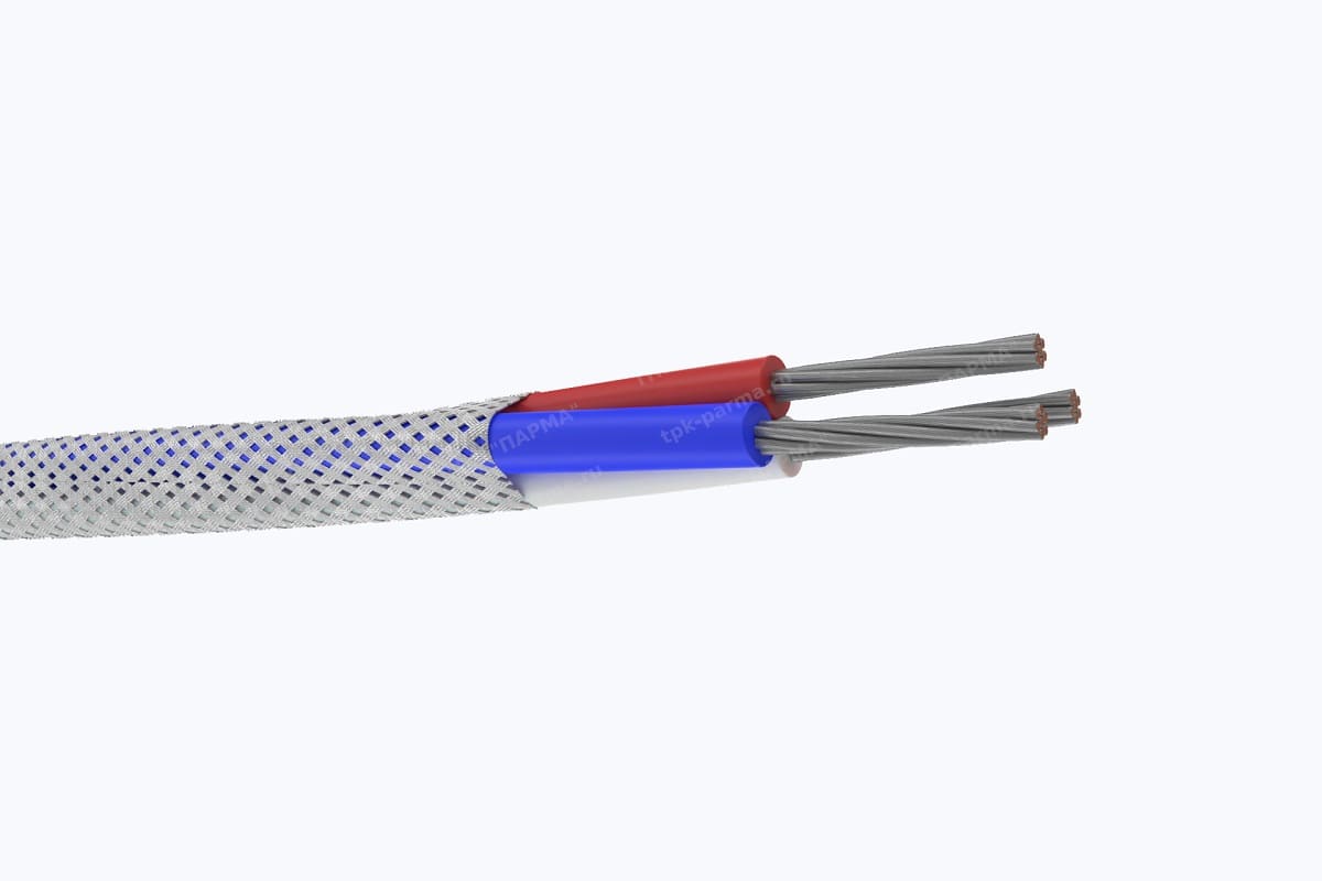 1. Две многопроволочные медные лужёные токопроводящие жилы с площадью номинального поперечного сечения 0,75 мм2, соответствующие 3 классу по ГОСТ 22483-2012.